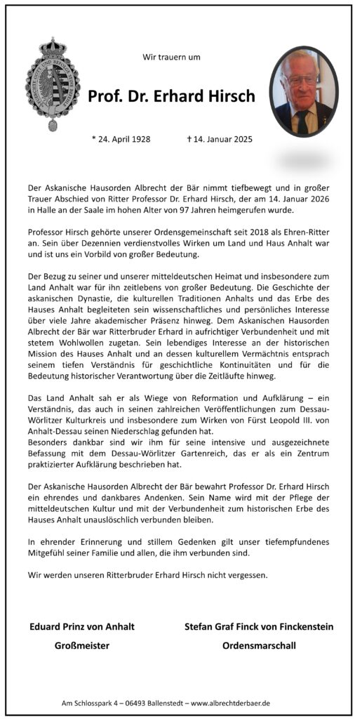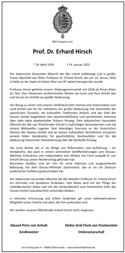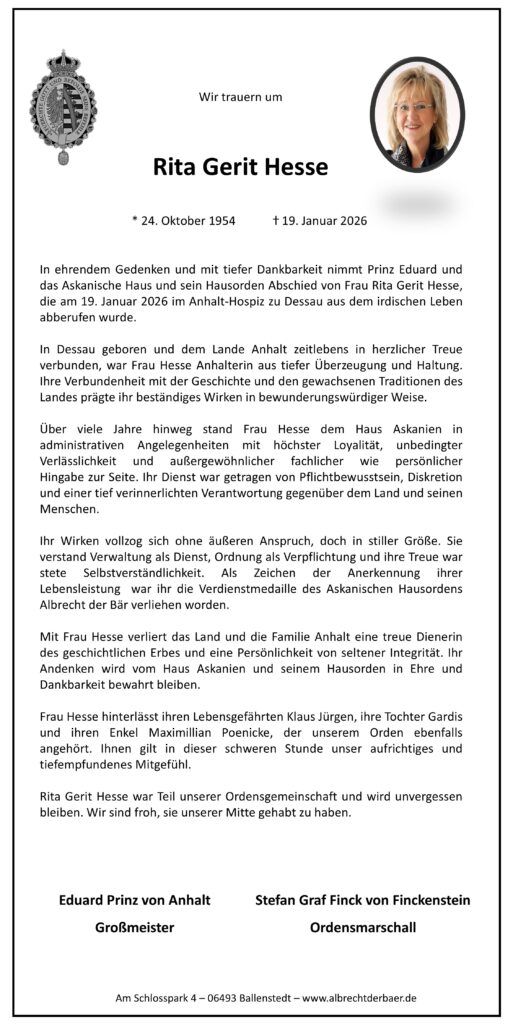 Als besonderes Highlight sei hier schon auf die Investitur am 05. September 2026 auf Schloss Ballenstedt verwiesen.